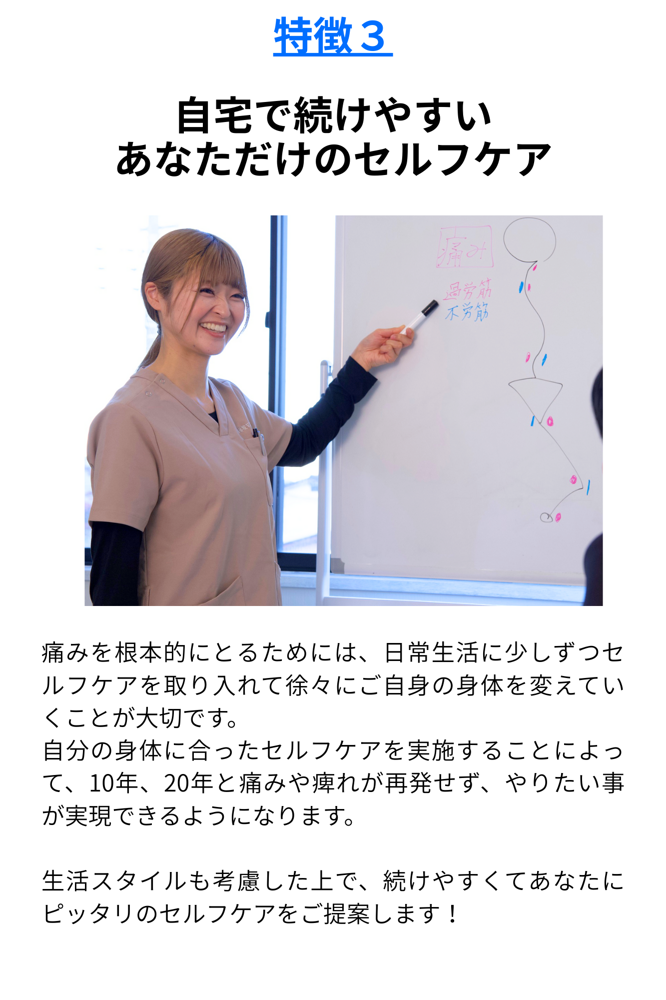 そして、一生モノの「自分の体のメンテナンス法」をお伝えすること この3つを大切にしています。