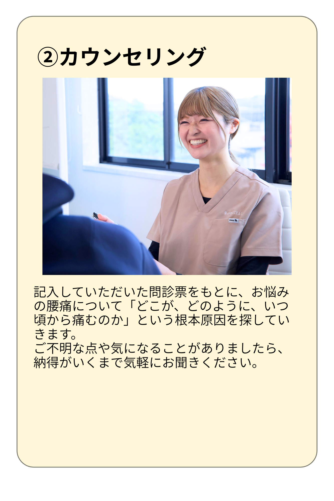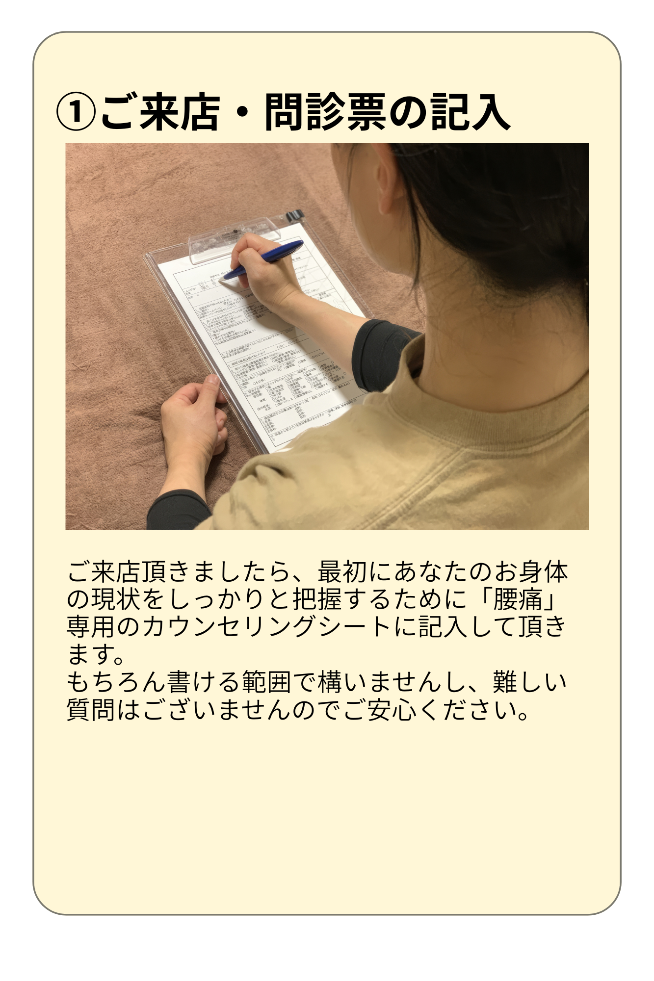私は誰よりもあなたと向き合います。あなたの悩みを私に聞かせてください。あなたの慢性腰痛を改善するために全力で施術いたします。本気で慢性腰痛を改善したいと思われる方はいますぐお電話ください。